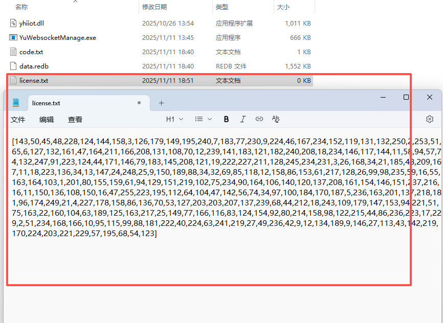 目录 搜索 展开 简介使用教程资源本地部署逻辑框架模型处理相关链接开发教程API文档传感器与抓取add_ray 添加射线(传感器)remove_ray 删除射线(传感器)add_paw 添加手爪标记put_paw 放置手爪get_paw 抓取手爪add_work 添加工件标记get_work 取工件put_work 放工件IO配置相关APIadd_io 添加IOadd_io_power 添加电源add_io_in_power 添加输入连接电源remove_io_in_poewr 删除输入IO连接电源read_io 读取ioglb_map_io 映射ioglb_read_io 全局读取io位置相关v_r* 增量旋转v_p* 增量平移glb_v_r* 全局增量旋转set_r* 旋转位置set_p* 平移位置通信APIadd_net 添加通信net_set_config 设置通信映射参数net_read_* 读取值net_write_* 写入值net_set_value_maps 通信数组映射set_map_joint 映射轴页面设计show_notice 显示消息通知自定义设计图表大屏模版其他元素物体操作add_child 添加子级add_name_child 添加到指定子级例子机器人抓取手爪动作案例模版制作机器人与PLC案例完整例子通信授权 暂无相关搜索结果! 阅读次数:32 本文档使用 MinDoc 发布 通信授权 通信授权 通过附件下载 双击打开生成code.txt,打开全选复制打开授权网址https://www.yhiiot.com/sys#/yhshow/yhcodeInput粘贴->点击授权复制授权信息,[]中括号及其内容建立license.txt,粘贴附件YuWebsocketManage.7z作者:力博特 创建时间:2025-11-11 18:37最后编辑:力博特 更新时间:2025-11-11 18:58